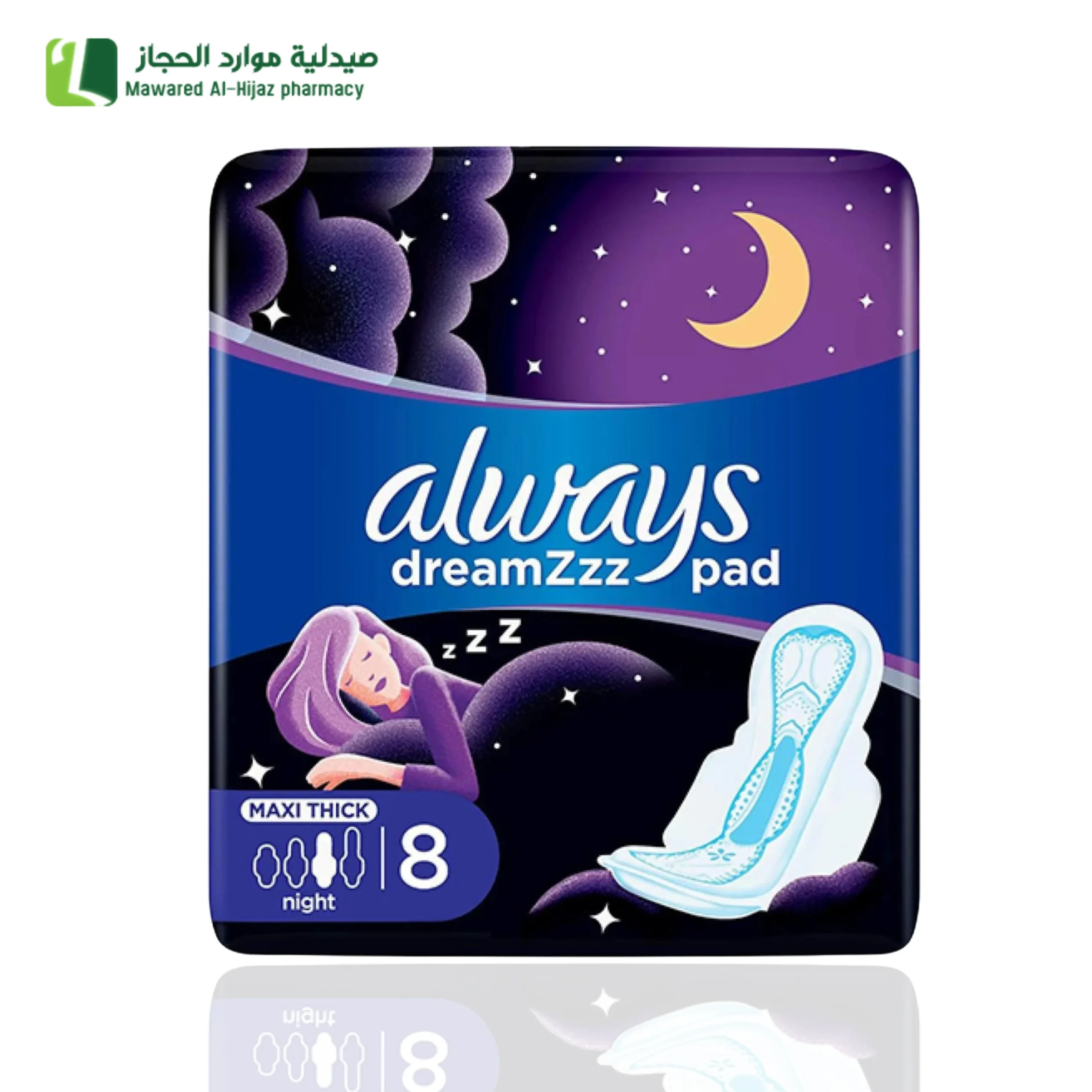 اولويز فوط صحية دريمز ليلية ماكسي سميكة بالاجنحة لليالي الثقيلة – 8 فوطة