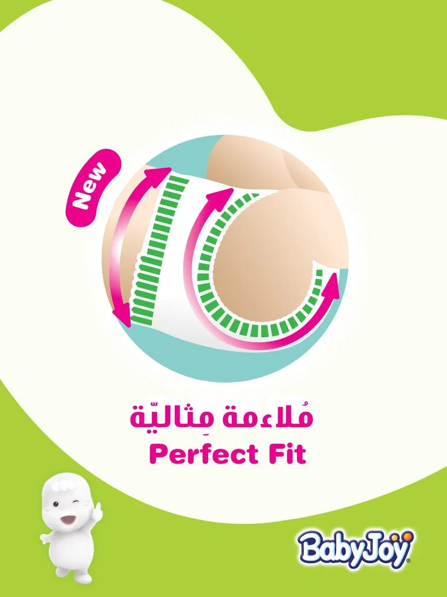 لأن مهارات الأطفال في التحرك تنمو بشكل سريع تم تطوير حفائض بيبي جوي لتوفر اقصى درجات الراحة وحرية الحركة بالأضافة الى قدرتها الفائقة على الامتصاص ومنع التسرب.