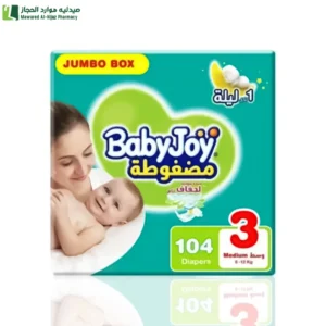 وصف المنتج: حفاضات بيبي جوي رقم 3 وسط (6-12 kg) صندوق جامبو 104حفاض