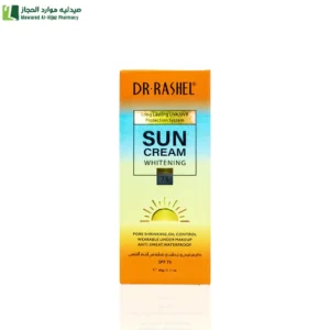 د راشيل كريم تفتيح وترطيب وحماية من أشعة الشمس بعامل حماية 75- 60 جم يحتوي على فيتامين ب 3 النياسيناميد ومضادات الأكسدة وحمض الهيالورونيك مما يجعله تركيبة فريدة لتفتيح البشرة وترطيبها. ثبت أن النياسيناميد يعمل على تقليص المسام ، وإبطاء إنتاج الزيت، وإصلاح أضرار أشعة الشمس، وإبطاء علامات الخطوط والتجاعيد