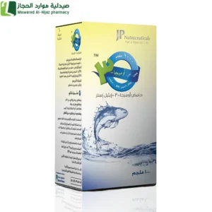 إرشادات الاستخدام: تناول جي بي أوميجا-3 1000 ملجم كبسوله واحدة مرة أو مرتين يوميا أوحسب إرشادات الطبيب التحذيرات والاحتياطات: “الآثار الجانبية المحتملة. يعتبر جي بي أوميجا-3 1000 ملجم كبسولات آمن بشكل عام ومع ذلك فقد تحدث الآثار الجانبية التاليةعند استخدام هذا الدواء: مشاكل في المعدة وعسر في الهضم، الغثيان، ألم في البطن والمعدة، تفاعلات تحسسية، دوار، مشاكل في حاسة التذوق، اسهال، قيء. اذا أصبت بأي آثار جانبية أو ظهرت آثار جانبية جديدة لم تذكر في هذه النشرة يرجى اخبار الطبيب أو الصيدلي.” المكونات: ، كل كبسولة جيلاتينية تحتوي على 1000 ملجم حامض أوميجا-3-ايثيل استر (زيت السمك)، الذي يعطي حوالي 500 ملجم علي الأقل من حامض الأيكوسابنتانويك، وتقريبا حوالي 90 ملجم من حامض الديكوساهكسانويك، بمجموع أحماض أوميجا 3 الدهنية يصل إلي 700 ملجم.