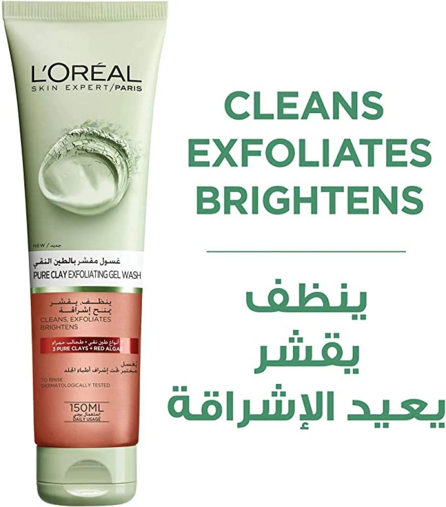 غسول الوجه لوريال بيور كلاي بالأعشاب الحمراء هو منتج مبتكر يجمع بين قوة ثلاثة أنواع من الطين النقي ومستخلص الطحالب الحمراء