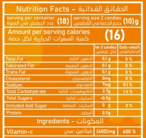 - مذرنيست فيتامين سي مزيج فريد للجمع بين فوائد فيتامين سي وخصائصه الطبية ومتعة الحلوى بدون اضافة سكر او الوان صناعية او مواد حافظة خالية من الجلوتين سهلة المضغ وسريعة الامتصاص