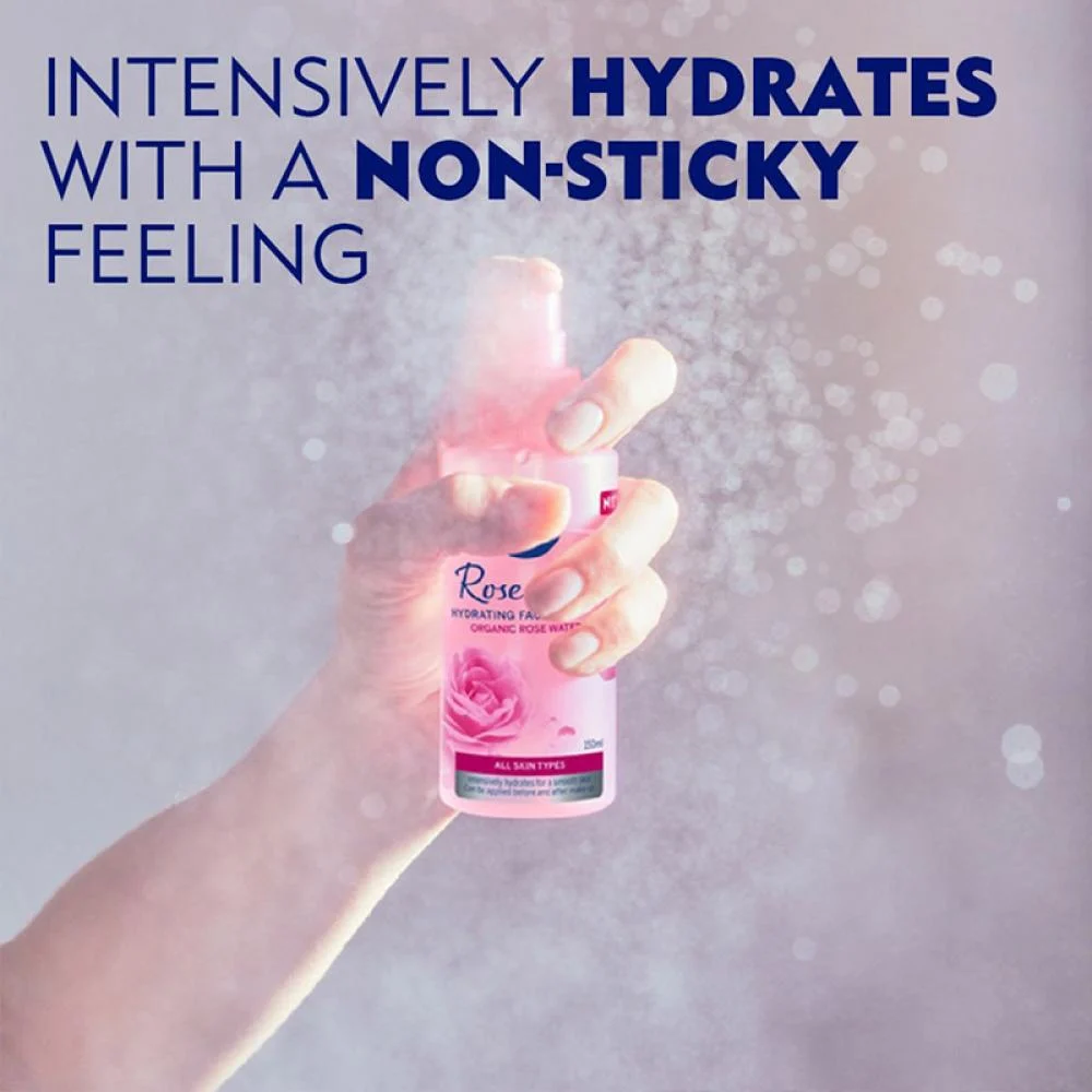 نيڤيا رذاذ مرطب للوجه روز كير بماء الورد العضوي هو منتج مبتكر يعمل على ترطيب البشرة بسهولة وسرعة.