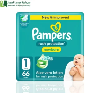 بامبرز حماية من التسلخات مع لوشن الصبار مقاس (1) (2-5 كجم) – جامبو باك 66 قطعة