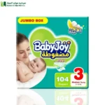 بيبي جوي مضغوطة مقاس (3) وسط ـ صندوق جامبو 104 حفاضة