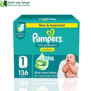 بامبرز حماية من التسلخات مع لوشن الصبار مقاس (1) ( 2-5 كجم) – جامبو بوكس 136 حفاض