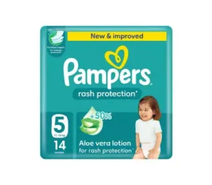 بامبرز حماية من التسلخات مع لوشن الصبار مقاس (5)(11-16 كجم) – 14 حفاض
