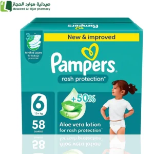 بامبرز حماية من التسلخات مع لوشن الصبار مقاس (6)(+13 كجم) – جامبو بوكس 58 حفاض