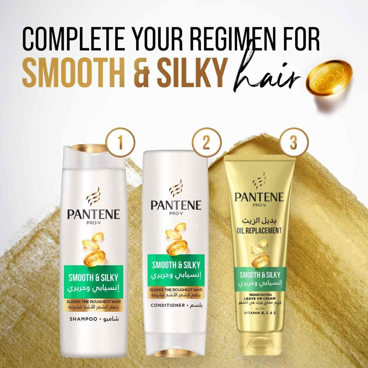 - روتين كامل لشعر انسيابي وحريري: اكتشفي الروتين الكامل الذي سيجعل شعرك انسيابيًا وحريريًا من مجموعة بانتين الكاملة –
