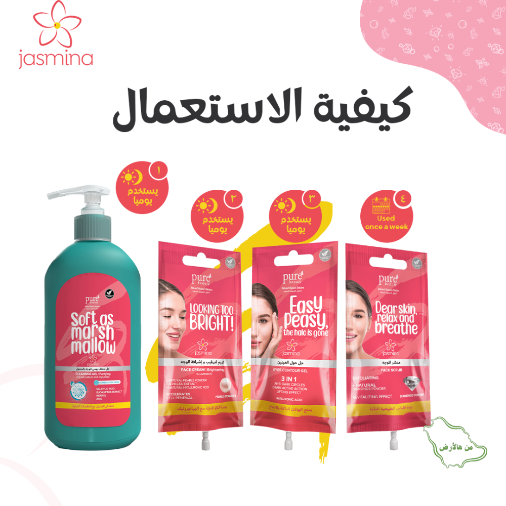 الجل المنظف : يستخدم مرتين يوميا صباحا ومساء