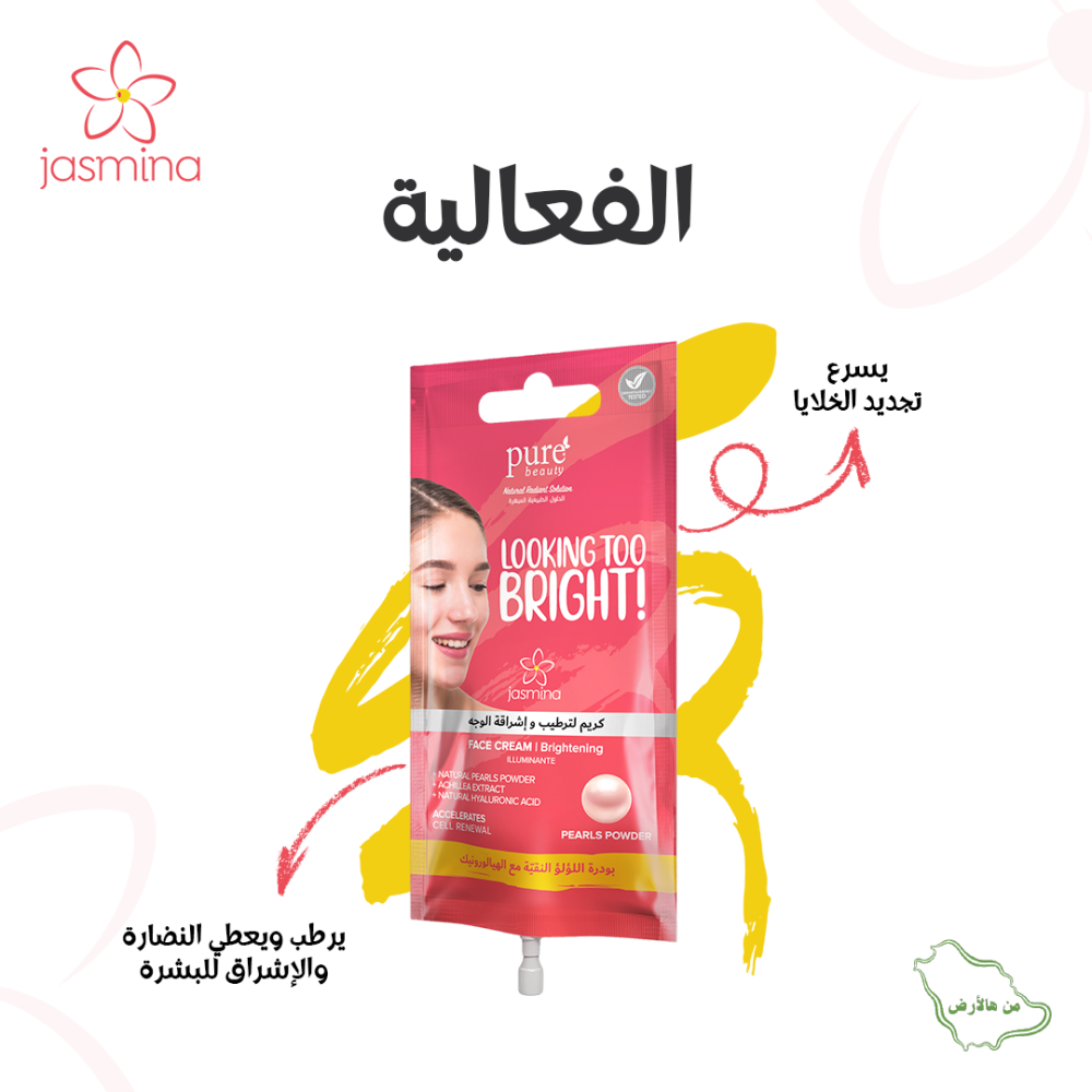 كريم لترطيب وإشراقة الوجه بمسحوق اللؤلؤ – 15مل|JASMINA