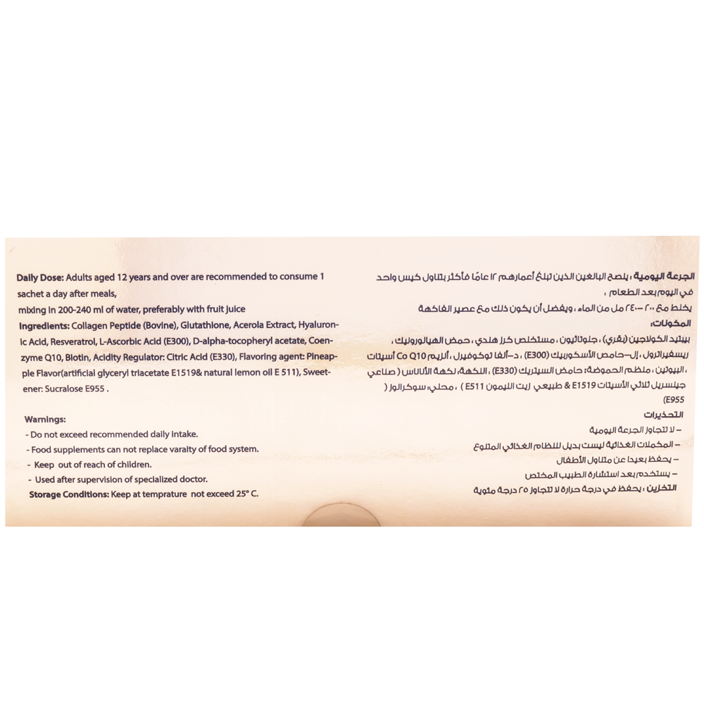 بيور كولاجين هي عبوة مكملات شاملة تجمع بين قوة الكولاجن والبيوتن والجلوتاثيون و CoQ10 لتعزيز صحة البشرة والشعر والأظافر. تحتوي كل عبوة على 30 كيس