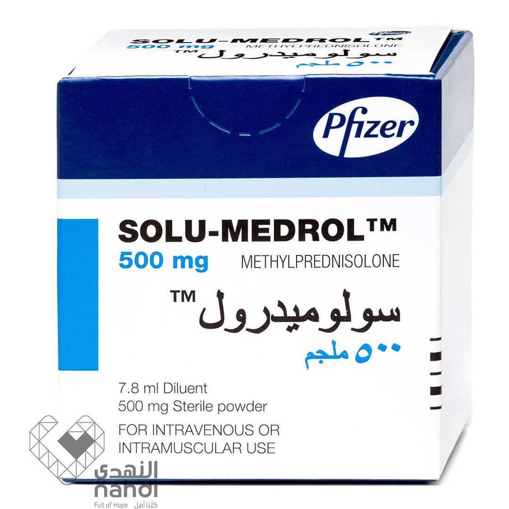 - Solu-Medrol 500 mg Injection 4 ml هو كورتيكوستيرويد يحتوي على بريدنيزولون.