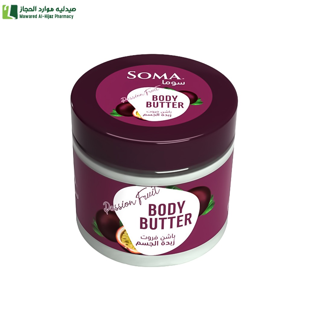 سوما زبدة الجسم باشن فروت لعلاج البشرة الجافة وتجديد خلايا البشرة واصلاحها، مثالي لعلاج التجاعيد وعلامات تمدد البشرة ويساعد الاستخدام اليومي على حماية البشرة من الآثار الضارة للظروف المناخية والبيئية.
