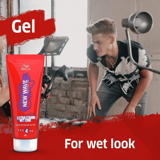 - نيوويف جل شعر قوي لمظهر شعر مبلل هو جل تصفيف شعر احترافي يمنح شعرك لمعانًا طبيعيًا.